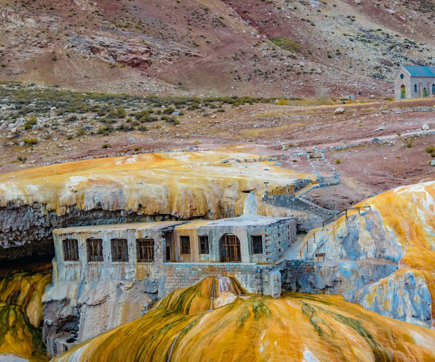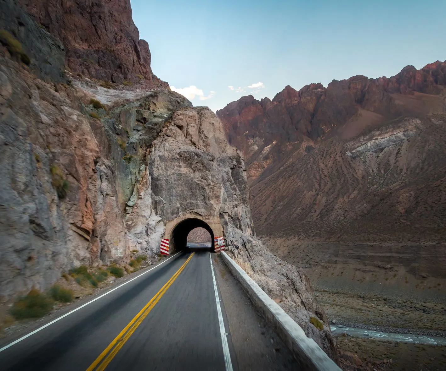 Excursión que nos propone caminar y disfrutar de la inmensidad de la montaña destacado por su riqueza paisajística. Saliendo por la Ruta Internacional nº 7 pasaremos por parajes de extraordinaria belleza tales como Potrerillos y Uspallata. Llegaremos al centro de ski Los Penitentes y poco después a Puente del Inca con su fascinante formación geológica y aguas termales (2720 m.s.nm). Haremos un stop en el "Mirador del Aconcagua" para obtener desde allí una inmejorable vista del cerro, coloso de América (6959 m.s.n.m.). Continuamos por la ruta hasta Las Cuevas, último poblado argentino en el camino. Regreso al hotel. Noche Libre.
